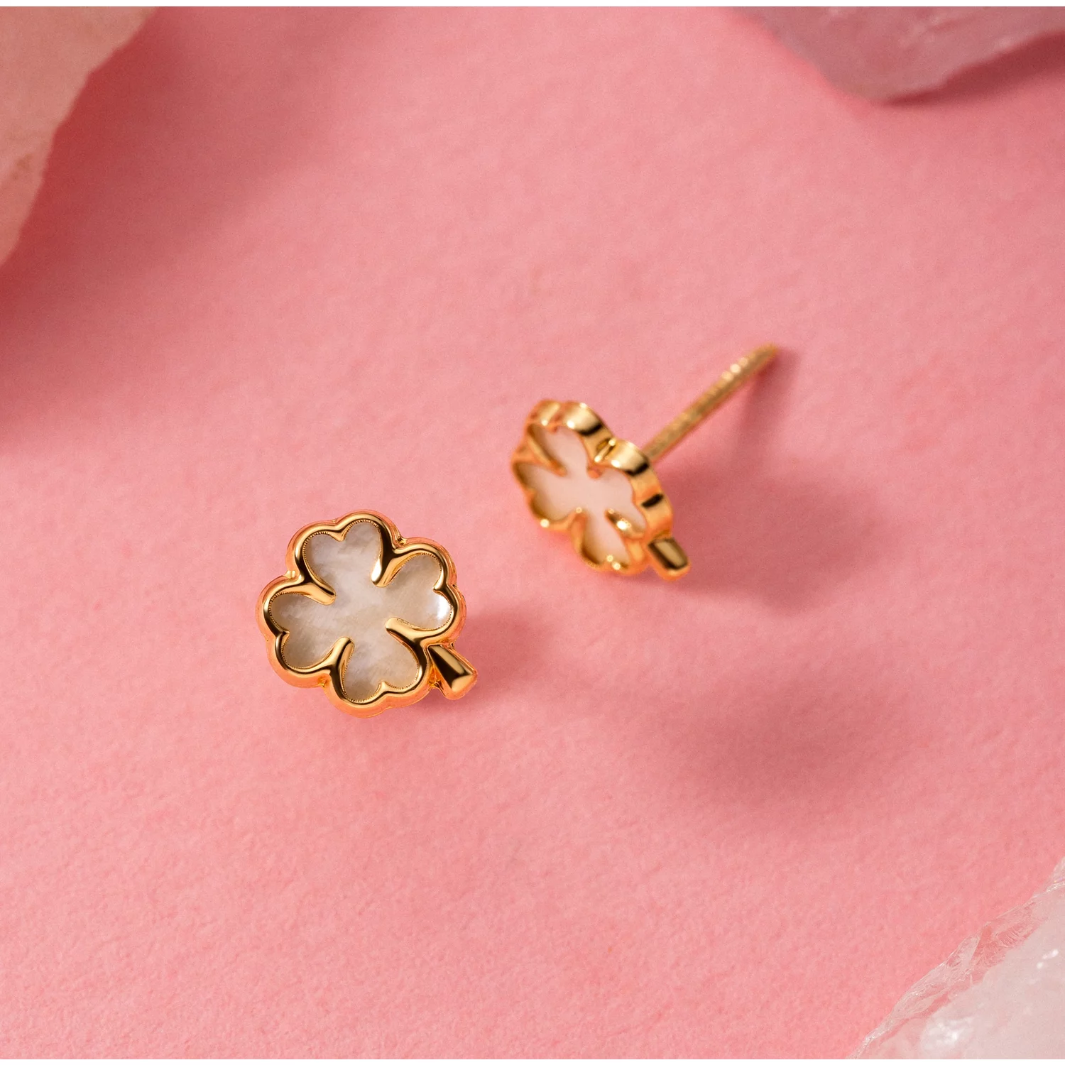 Cercei din aur 14K Mother of Pearl Clover
